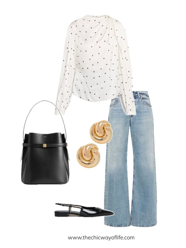 Polka Dot Blouse with Denim
