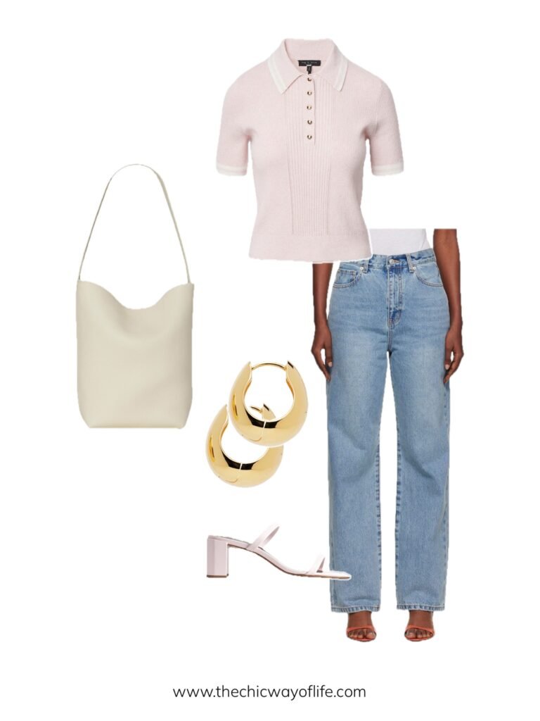 Pair a classic polo shirt with jeans and slip-on mules. The polo brings that preppy-professional vibe while being significantly cooler than button-downs. Great for chill but chic office days!