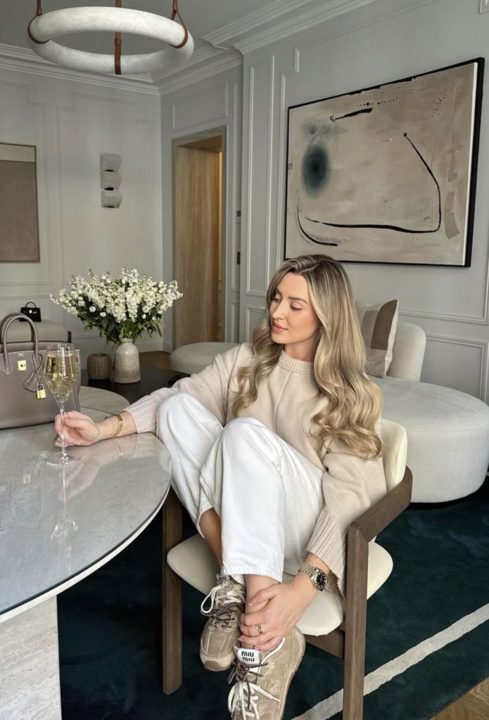 Why it works: Neutrals done right! This monochromatic approach looks expensive and polished while staying versatile for unpredictable weather.
