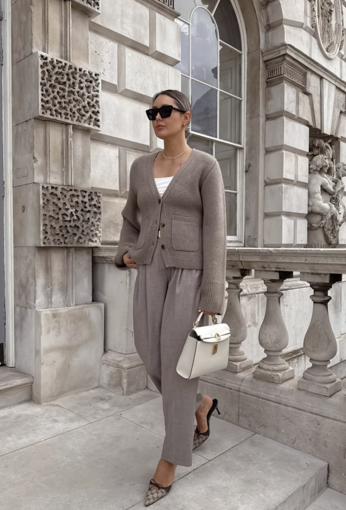Pair knit trousers with a matching polo-style knit top, then elevate with pointed-toe heels. Add a structured bag and you’re ready for anything from lunch to early evening drinks.