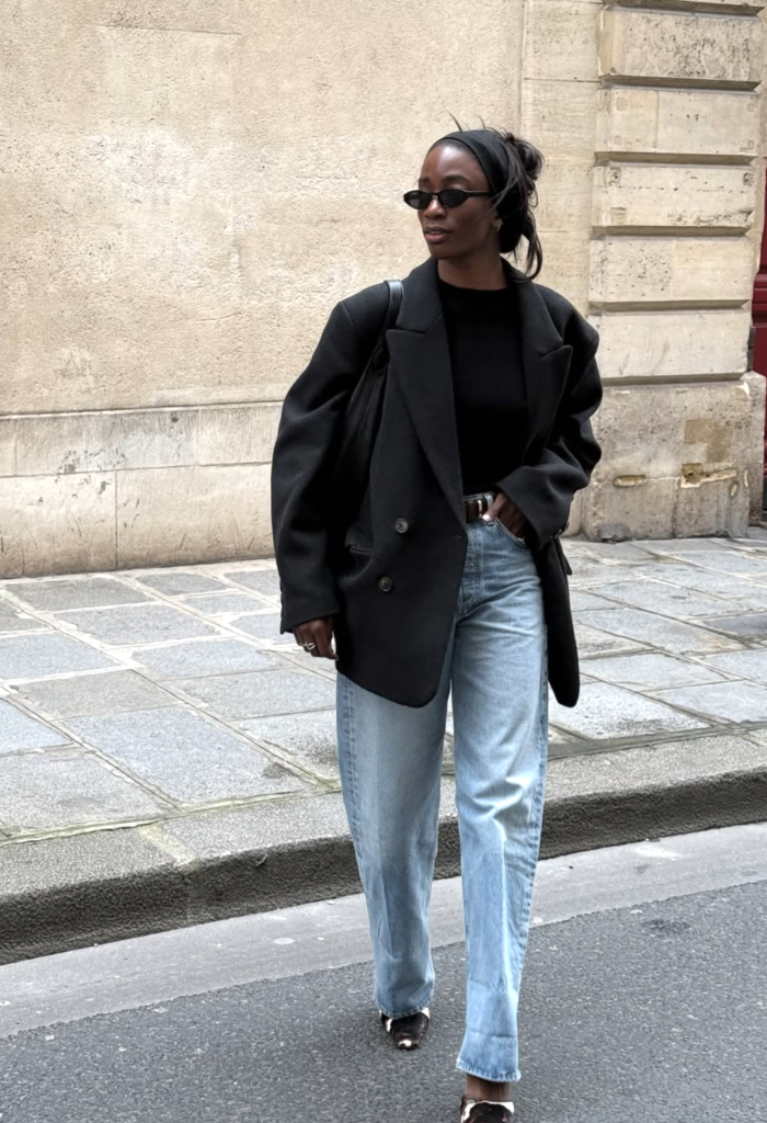 Style a blazer over a simple fitted tee, add jeans or trousers, and slip into comfortable mules. Keep accessories minimal for that effortless Parisian vibe.