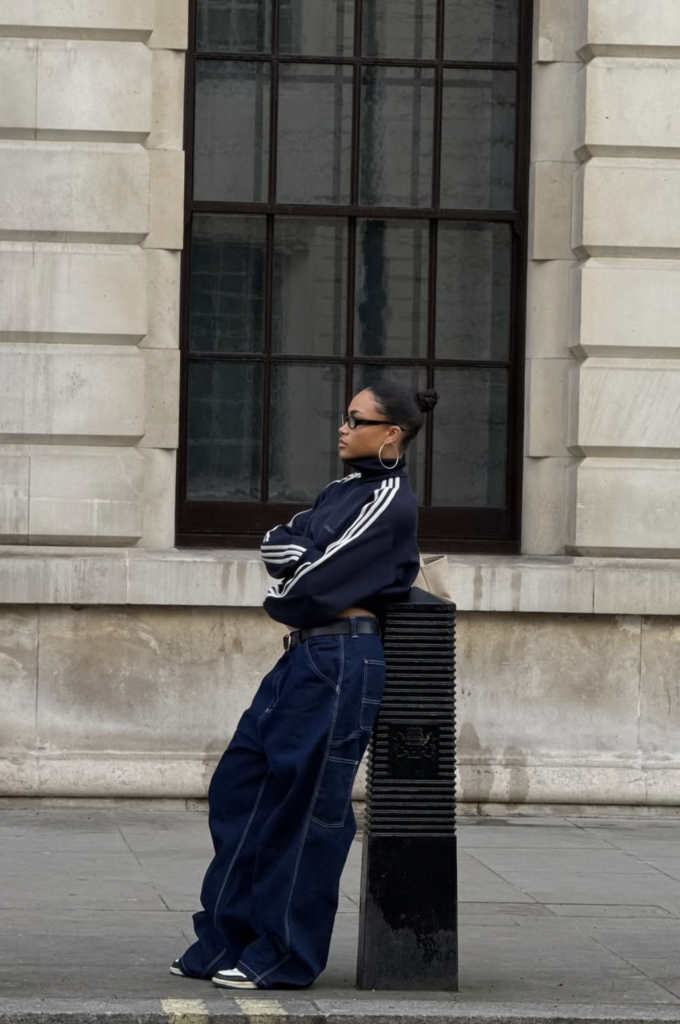 Why it works: Comfortable and on-trend! Baggy cargos with a sporty jacket embrace the relaxed spring aesthetic perfectly.