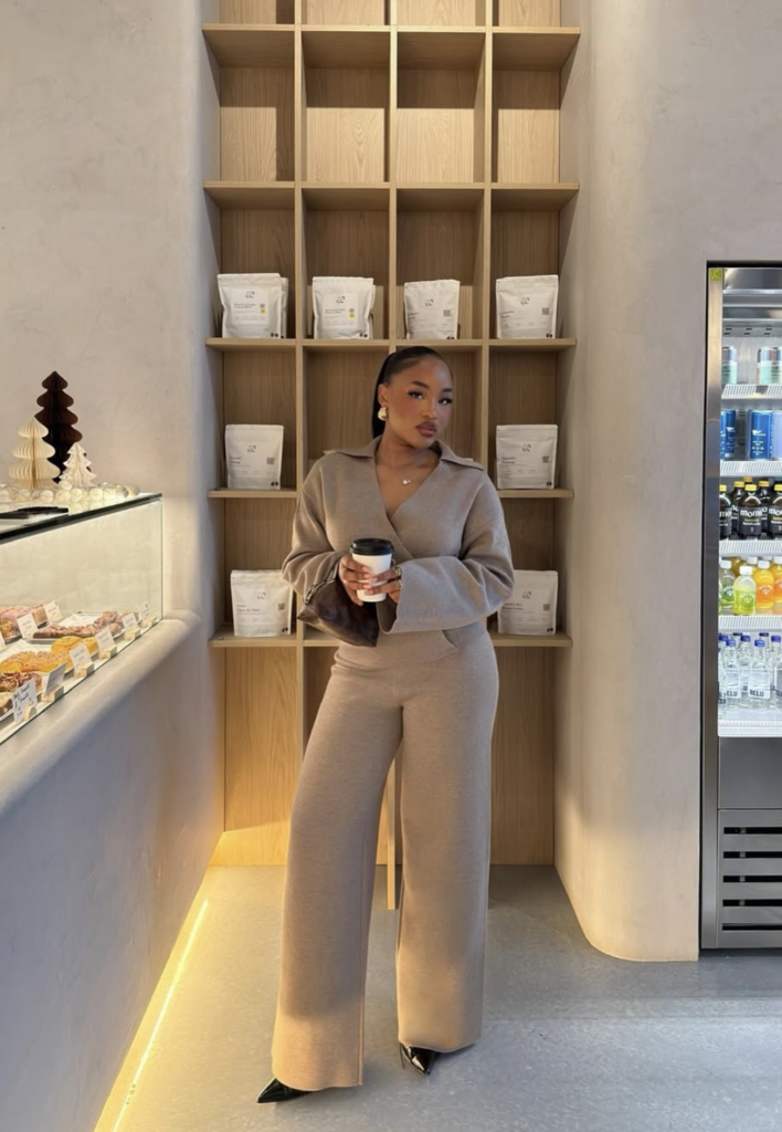 Why it works: The blazer instantly elevates the cozy knit set, making it appropriate for casual meetings or upscale errands.