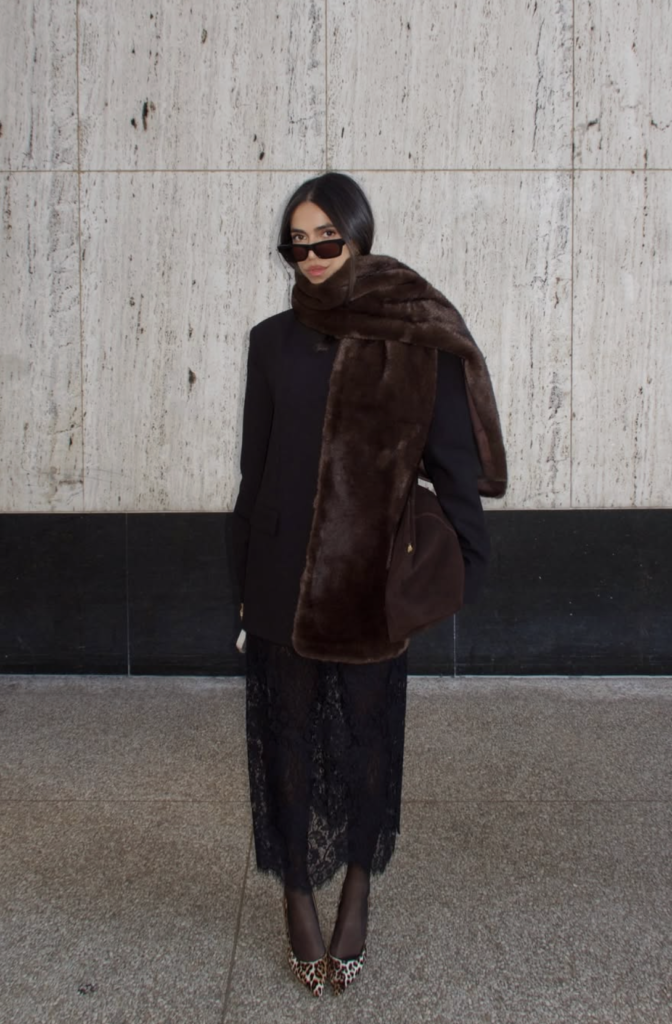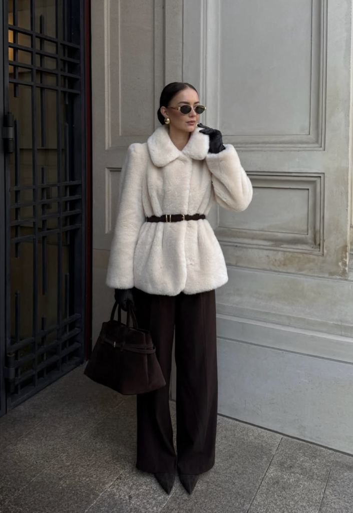 Why it’s winter chic perfection: Faux fur adds instant glamour, feels luxurious, and makes everything underneath look more expensive. It’s feminine, modern, and seriously statement-making!