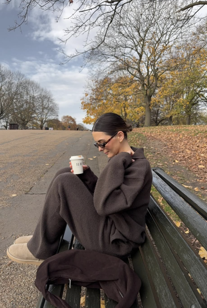 Look 15: Comfy Set With Uggs Same matching set styled casually with Uggs and a cozy coat. Shoulder bag or crossbody bag for practicality. Effortless weekend elegance!
