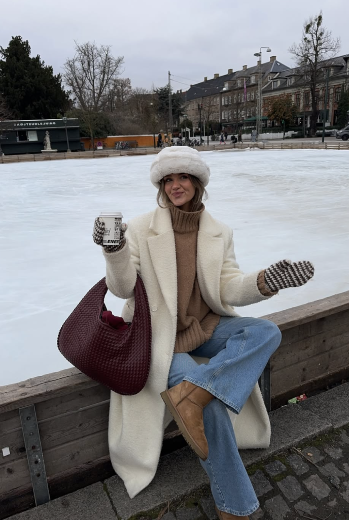 The beauty of brown is how highly versatile it is – you can dress it up with satin skirts and heels, keep it casual with jeans and Uggs, or go full cozy-chic with matching knit sets and Uggs. Mix your textures (chunky knit with smooth leather!), play with different brown tones together, and don’t be afraid to layer it under vests or over turtlenecks.