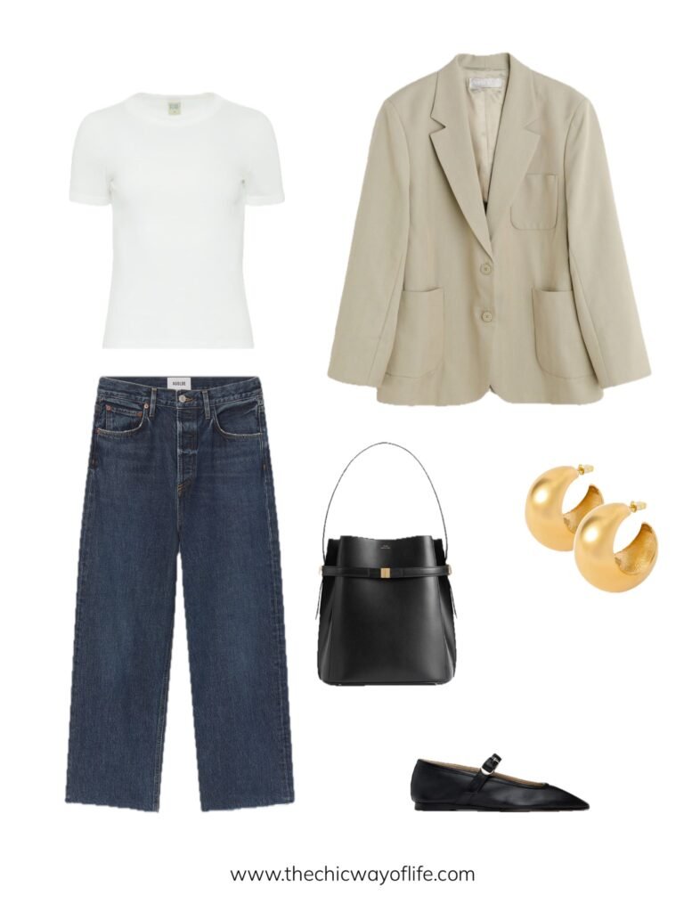 13. Jeans with Blazer, Tee and Ballet Flats