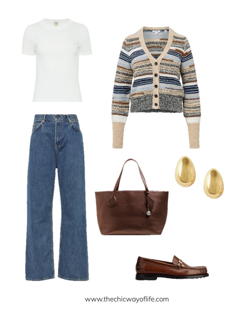 12. Straight Jeans with Striped Cardigan and Loafers