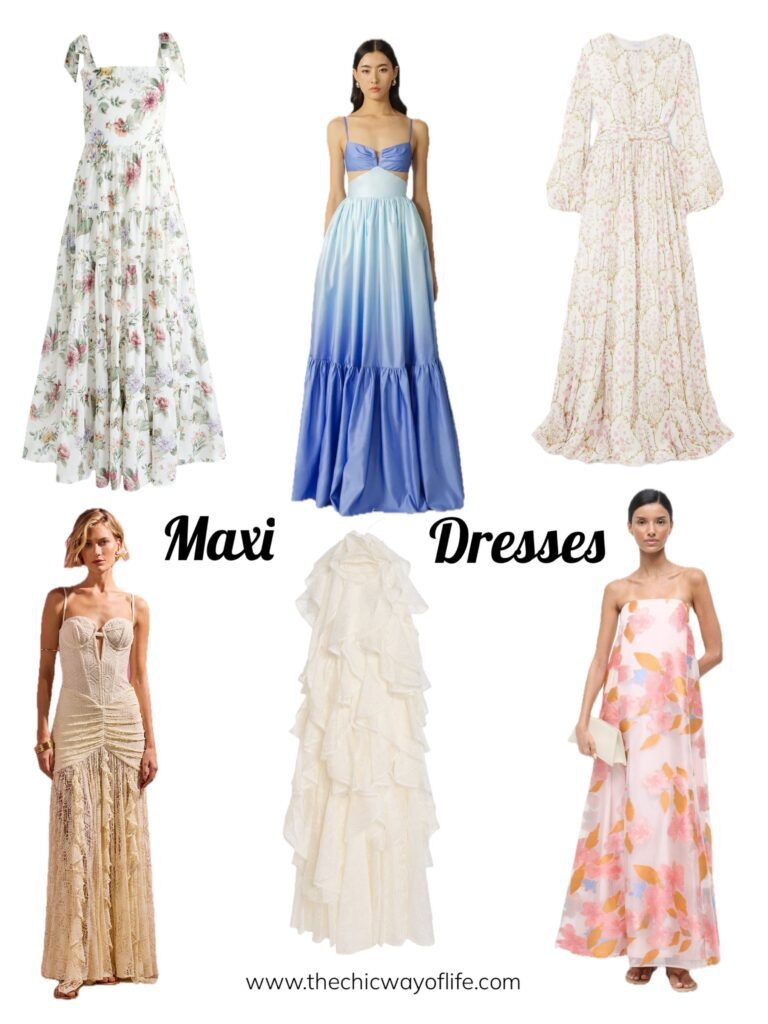 The styles to look for: Flowy floral maxis in lightweight fabrics, satin slip maxi dresses in solid jewel or pastel tones, linen maxis for that relaxed Mediterranean vibe, and printed maxis with bold patterns.