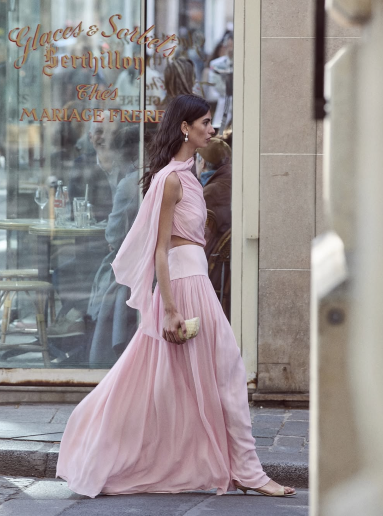 Vibe: Feminine luxury, romantic details, playful elegance