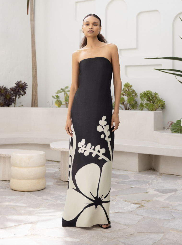 Famous for their iconic ark bag, Cult Gaia’s resort wear is equally stunning! Expect sculptural cutouts, natural materials, and pieces that are true works of art. Their dresses photograph beautifully and feel incredibly special.