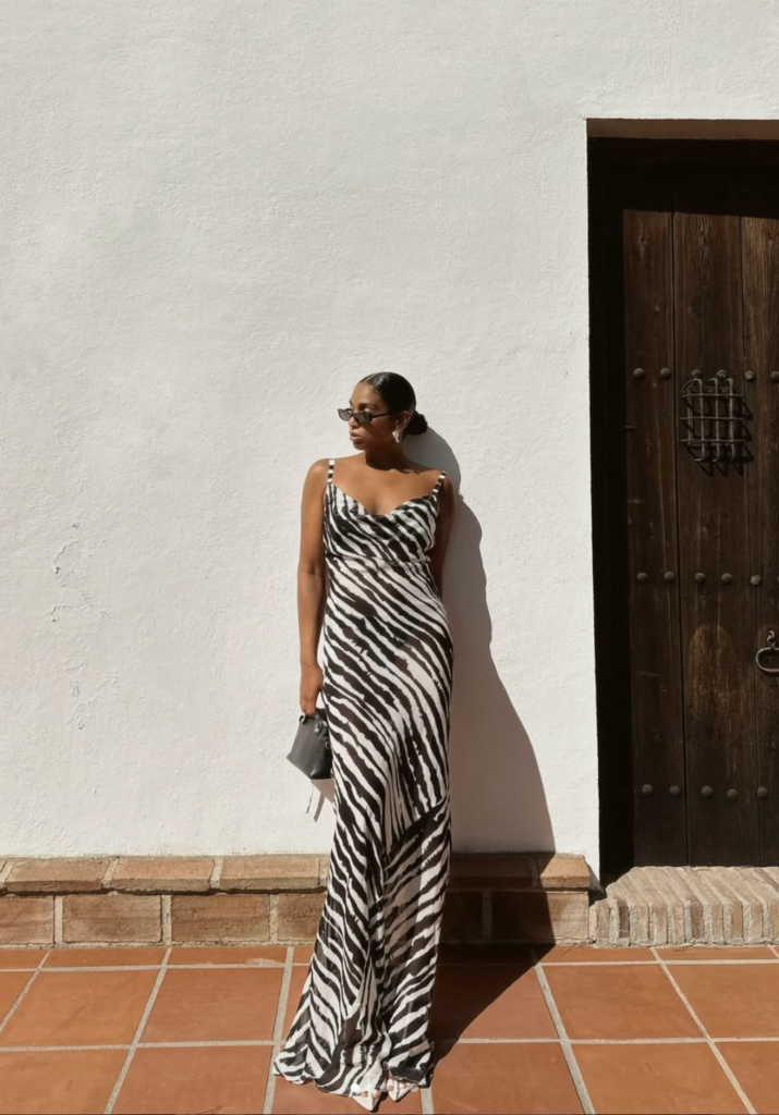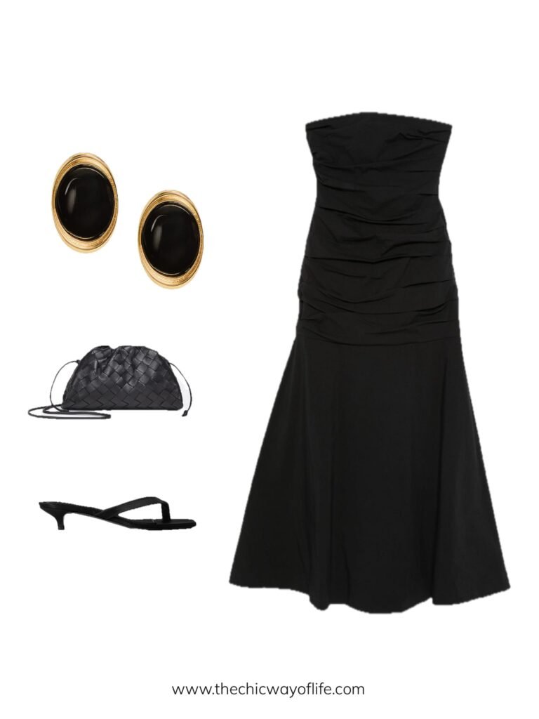 Style a elegant maxi black dress with statement earrings, heeled mules, and a clutch. This timeless choice works beautifully for upscale dinners or romantic seaside restaurants – chic, sophisticated, and always appropriate!