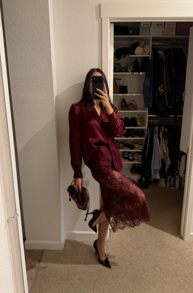 Styling tip: Black lace is classic, but burgundy, navy, or cream lace feels especially gorgeous for winter dinners!