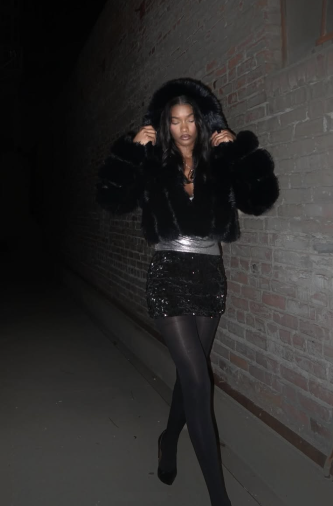 5. Mini Skirt and Faux Fur: Glam Night Out