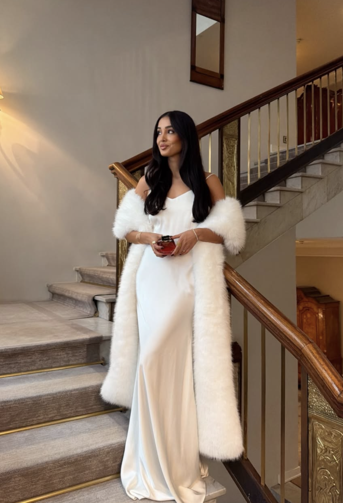 The Look: Pair a delicate lace dress (midi or mini length) with a luxurious faux fur coat or jacket. Add tights for warmth, pointed-toe heels or heeled boots, and keep jewelry minimal – maybe just delicate earrings or a bracelet. Carry a small clutch or structured mini bag.